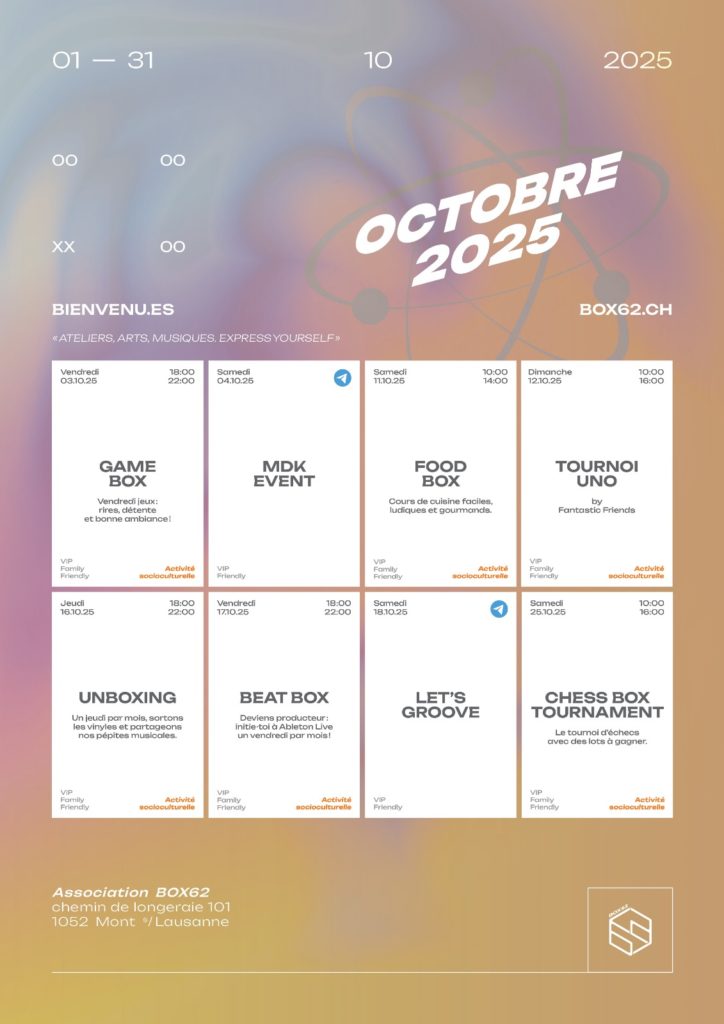 Retrouvons-nous un VENDREDI par mois de 18h00 à 22h00 autour de tables de jeux (Uno, Skyjo ou Jass).